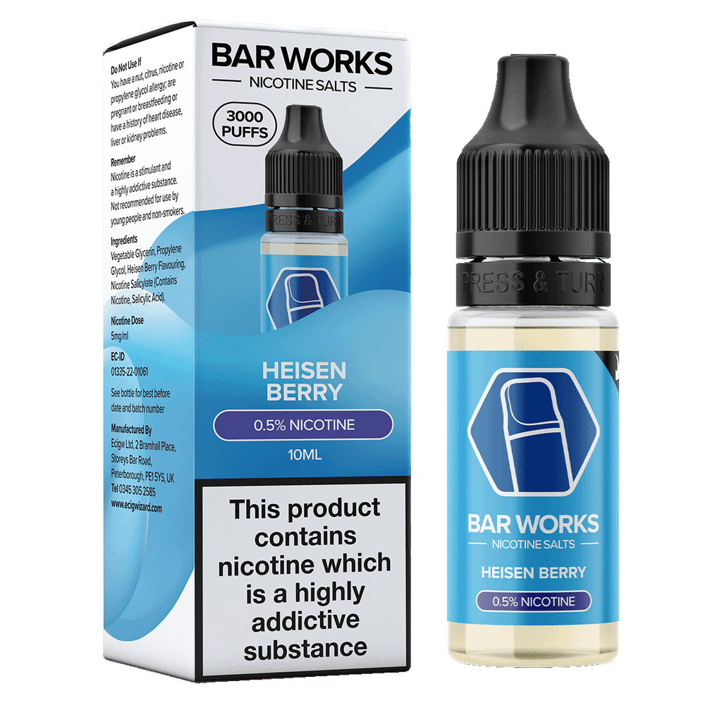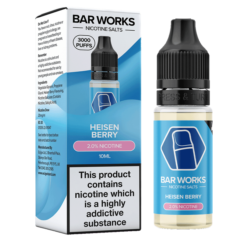 Introducing Heisen Berry Nic Salt E-Liquid by Bar Works. Taste the fresh fruity fusion of juicy sweet blueberries fused with a mixed berry concoction blended together with an icy cool menthol undertone to provide the ultimate flavour experience.