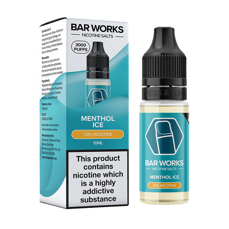 Introducing Menthol Ice Nic Salt E-Liquid by Bar Works. Taste the refreshing flavours of deliciously fresh menthol with a cool icy chill with every inhale and exhale to provide the ultimate flavour experience.