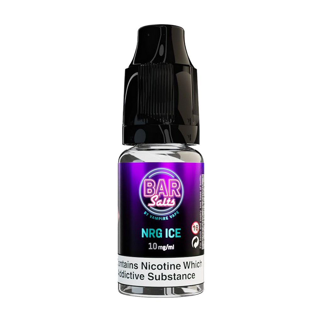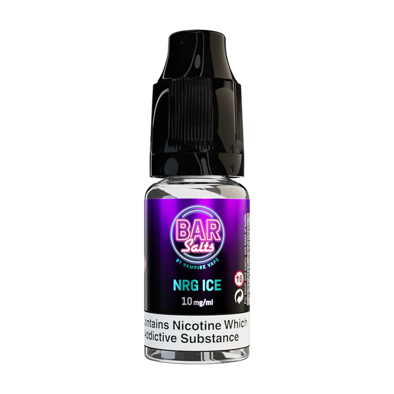 NRG Ice e-liquid from Vampire Vape's new Bar Salts 10ml collection gives a delicious energy drink vape with a twist of ice menthol, providing a smooth and pleasant throat hit and a mouth-watering aftertaste.