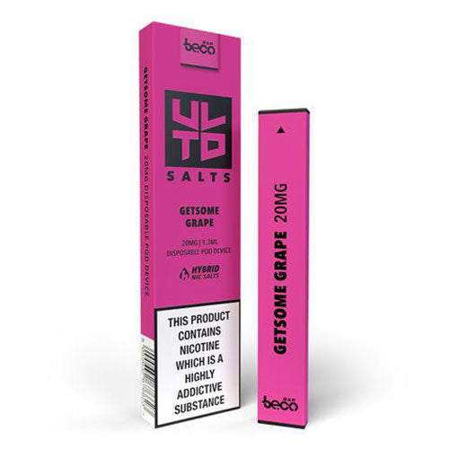 Getsome Grape from ULTD Salts is bursting full of fruity grape and sweet flavours, packed into a pocket friendly simple to use, disposable vape.  The ULTD Puff Bar has draw activation and 1.3ml e-liquid, which is perfect for on the go vape devices.